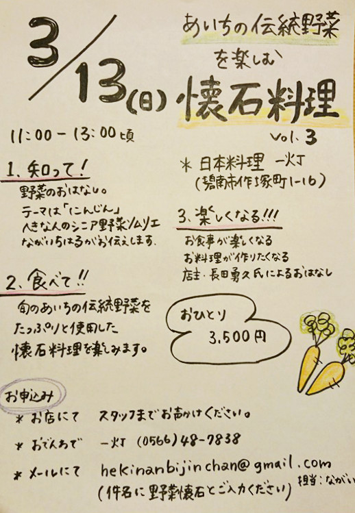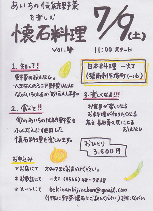 一灯の「あいちの伝統野菜を楽しむ懐石料理」 (第四回)