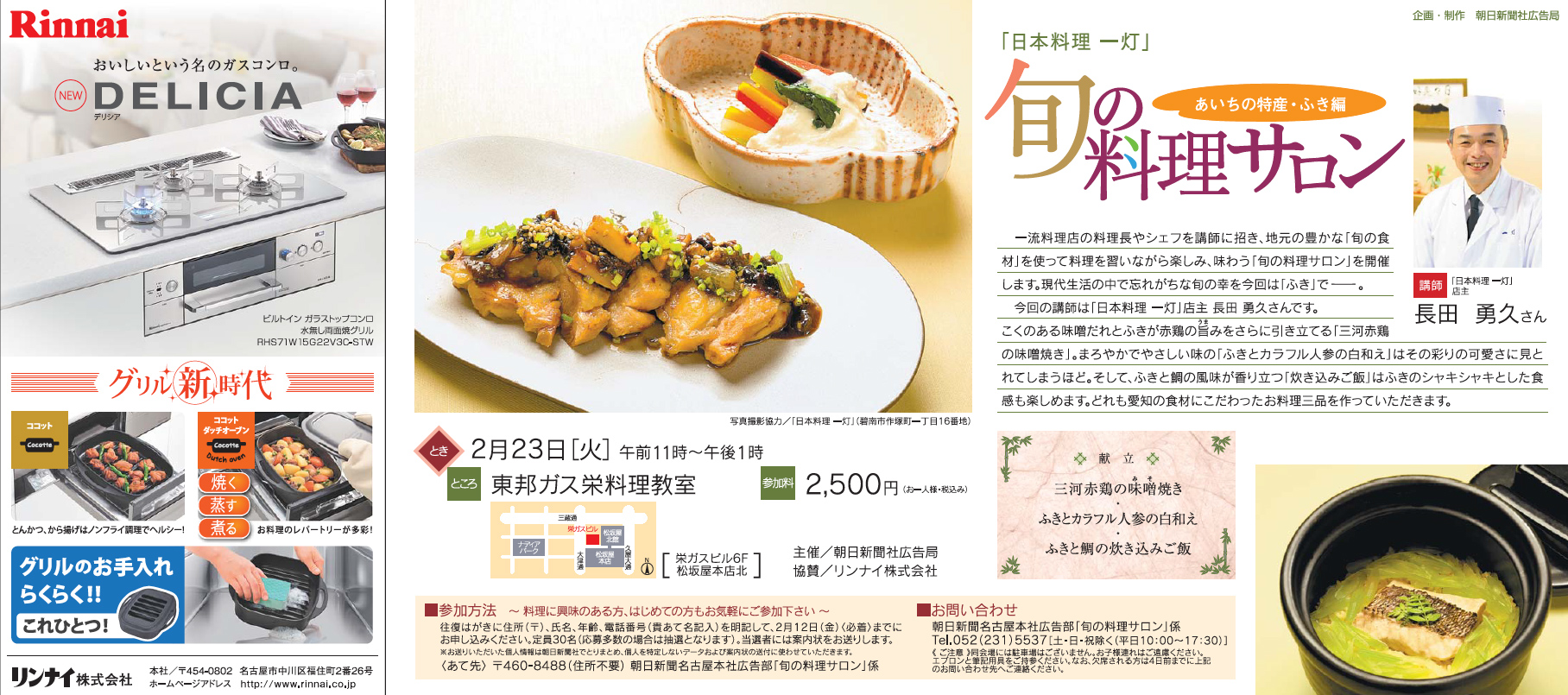 「一灯」にて店主の長田勇久と一緒に試食、調理される様子が放映されます。