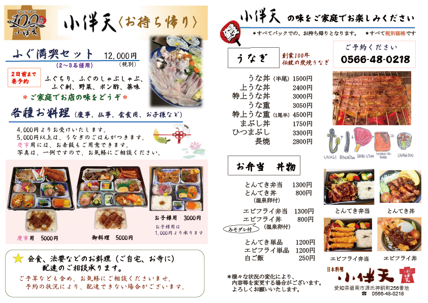 2. 天ぷら定食、上天ぷら定食はお休みします。